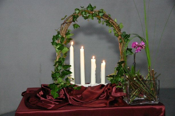 Zo ook de panelen aan de zijwanden links en rechts van de aandachtswand. De panelen stellen de tocht van de Israƫlieten door de woestijn voor. En de aandachtswand met zijn vertikaal gerichte betonplastiek doorsnijdt de horizontale lijnen van de panelen aan de linkerwand. Zij beeldt uit wat voor de Israƫlieten de vuurkolom is en wat voor ons het vertikale contact is tussen hemel en aarde. Naar rechts toe, leiden de glas-in-lood panelen naar het beloofde land.